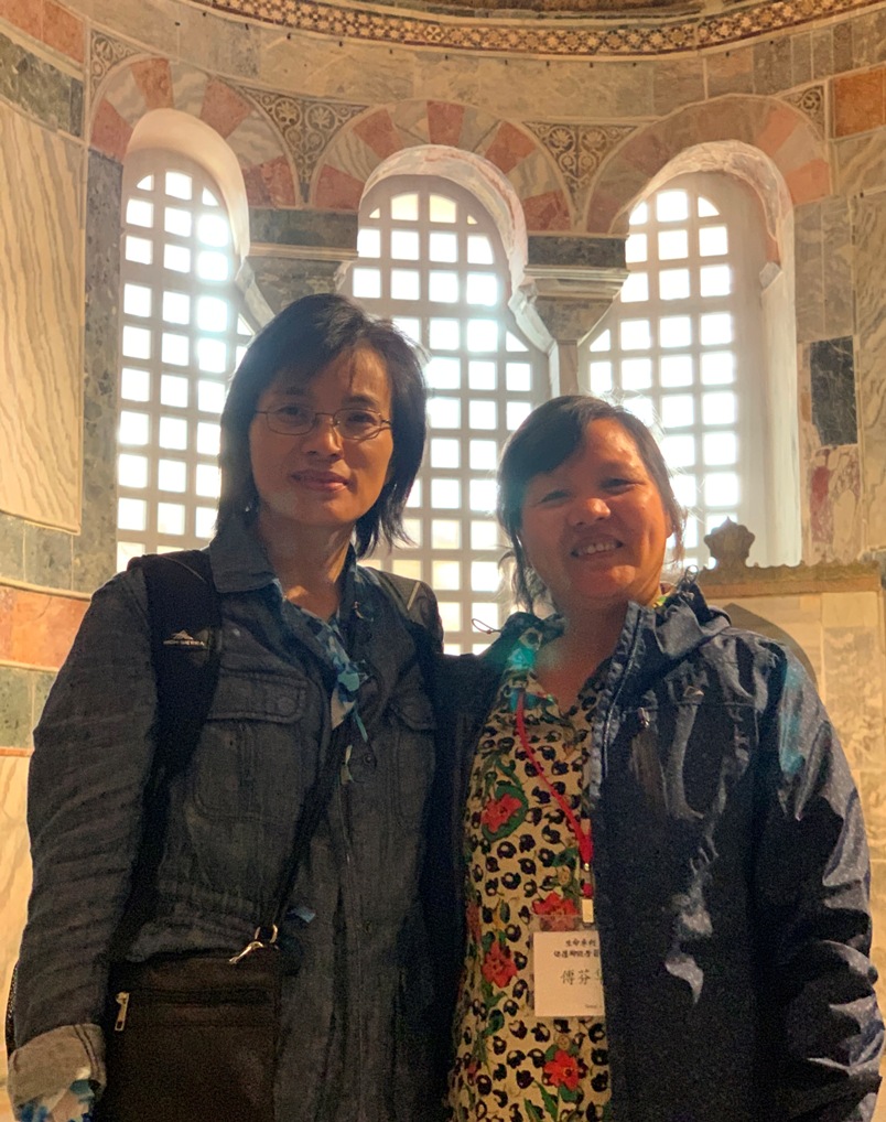 傅芬华姊妹与周晓勤姊妹摄于2019年“保罗宣教之旅”