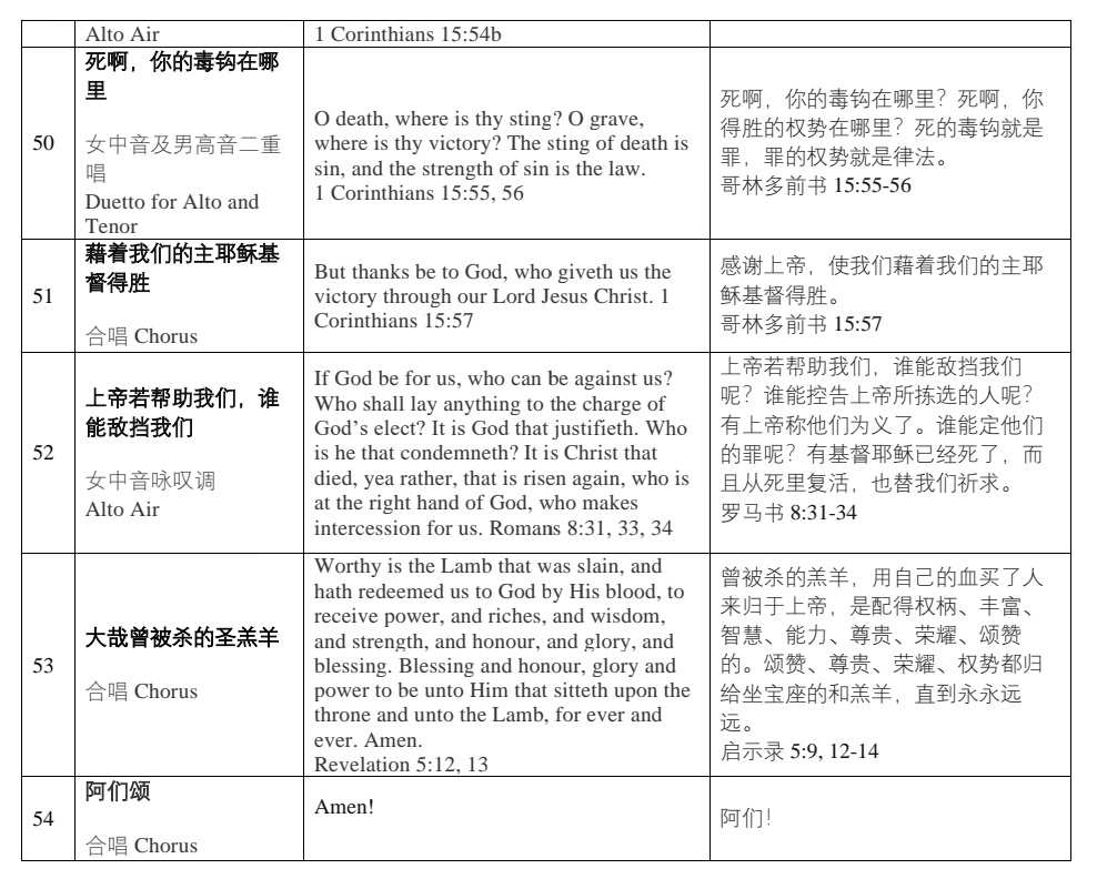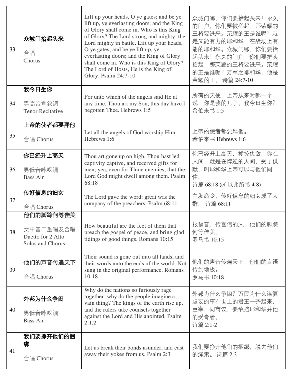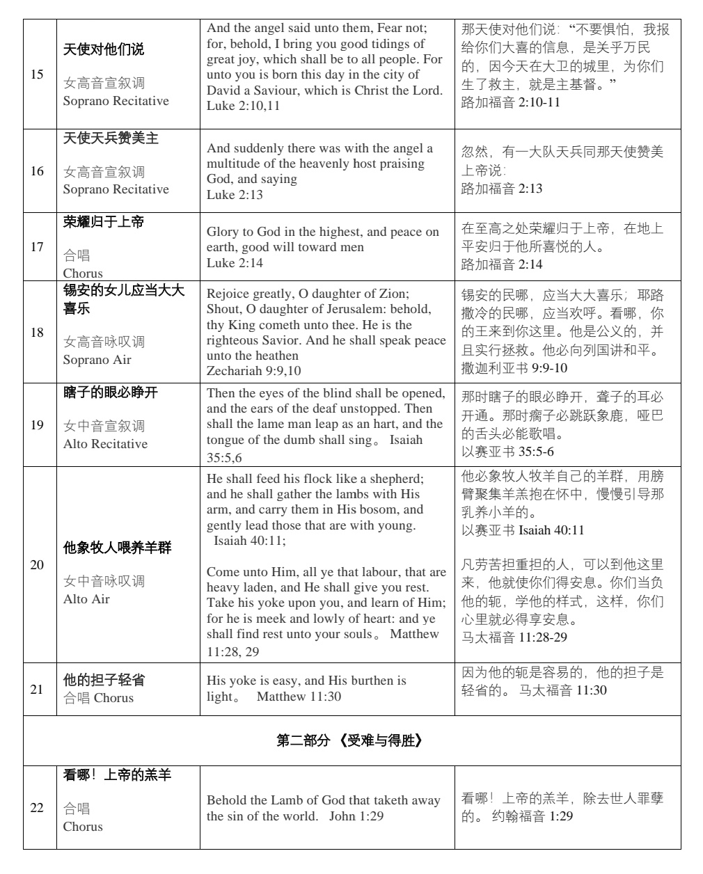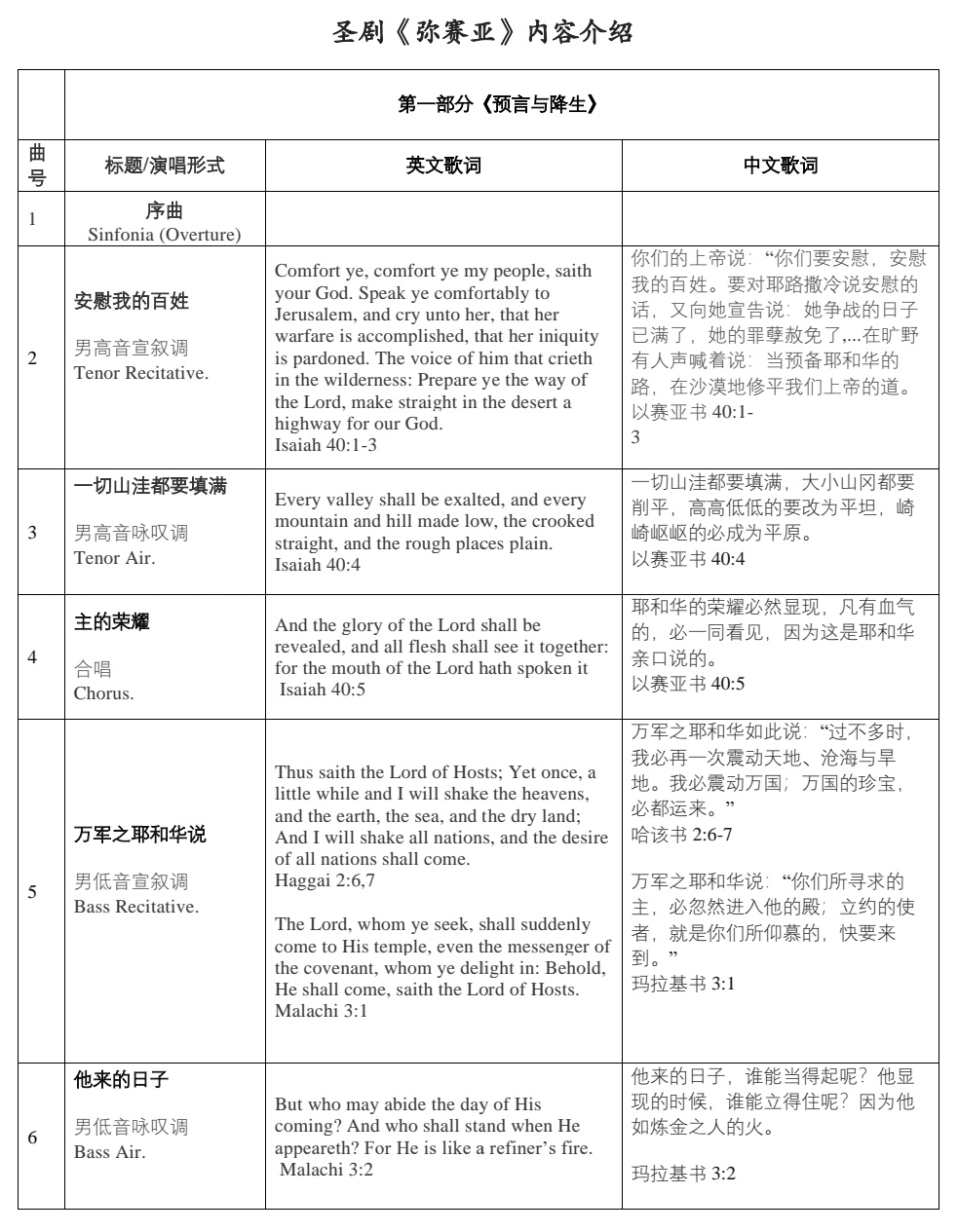 最后,附《弥赛亚》的剧本文字内容,其中的中英文歌词会帮助你更深的理解整部作品所表达的深刻内涵。