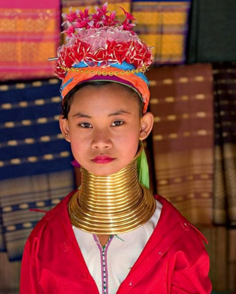 比如缅甸克扬族女性以长脖子为美,女孩子很小就用铜环套在自己的颈部,10-25岁之间每年增加一个铜环,以伸展她们的脖子。但是,当她们婚嫁之后所生育的女孩还是短脖子,又需要再次重复在颈部套环的步骤。