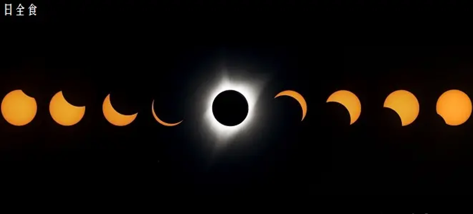 日全食:全日食是壮丽的天文奇观,它是如何产生的呢?地球绕太阳旋转,月亮绕地球旋转,当太阳、地球、月球排列成一条直线的时候,便会产生日食现象。月球的直径是3476.28公里,太阳的直径是139.2万公里,相差约400倍。奇妙的是,月球与地球之间的距离为38万公里,太阳与地球的距离是1.5亿公里,刚好也相差400倍。所以,在地球表面看太阳和月亮几乎一样大,相当于太阳被同比例缩小。因此,当全日食发生时,月亮差不多将太阳完全遮盖,挡住太阳耀眼的光辉,只剩下太阳边缘的色谱层,便于天文学家对太阳光谱及太空进行观测研究。18