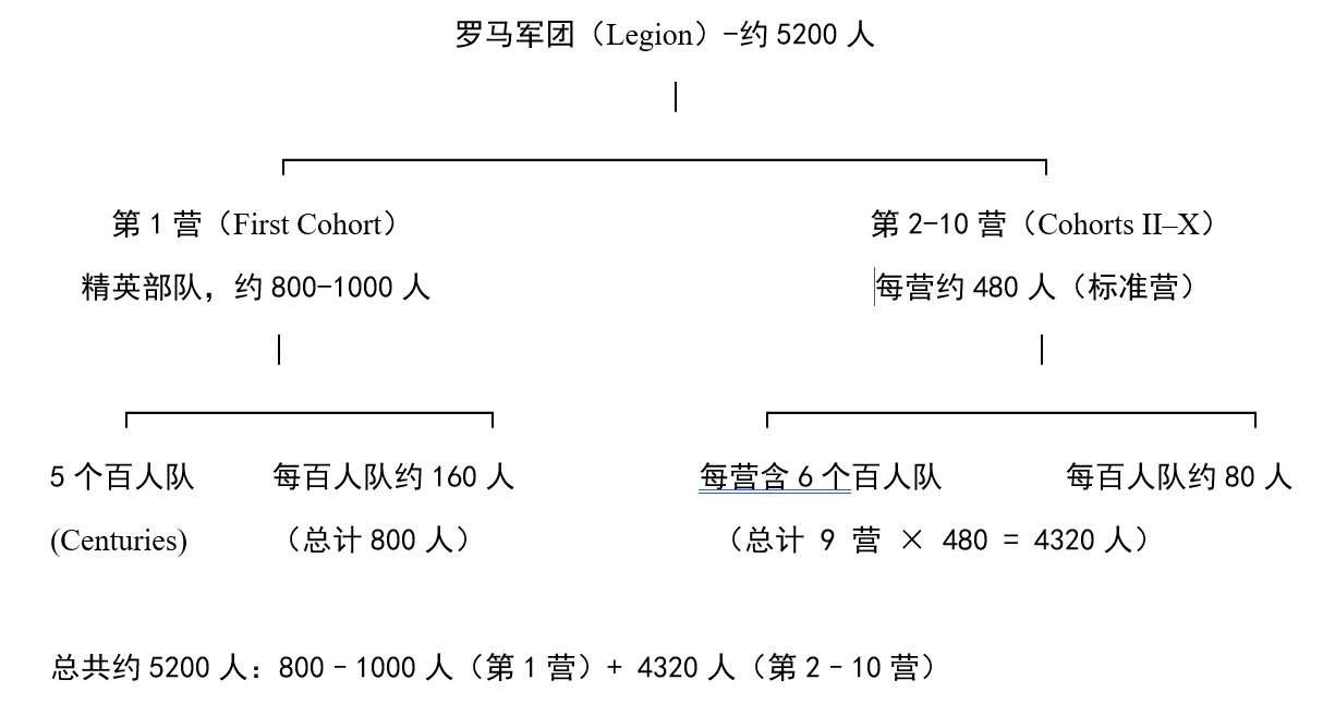 一个罗马军团(Legion)大约5200人,下辖10个营(Cohort)。千夫长(Tribune)大概就是统辖一个营的中高阶军官。百夫长(Centurion)属中层军官,统管一个百人队(Century)。