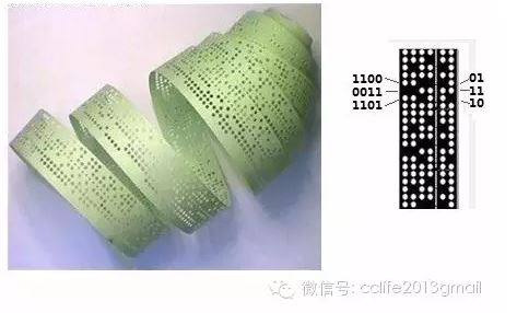 70年代使用计算机时,我用的是ALGOL60语言。输入的程序和数据,都是用穿孔纸带表达的。有孔代表1,无孔代表0。当我看到DNA编码时,很容易产生联想。穿孔带和染色体很相像。这样的联想,帮助我用编码和数学来分析DNA编码。