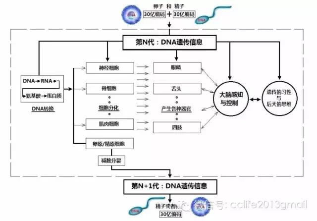 再复杂的计算机软件,都是0和1编制的;DVD上一部电影,也是0和1编的。之所以这些编码能够成为软件、成为电影,是因为许多0和1的代码,按照特定的、严格的序列编制。显然,编制人的DNA编码,也不是一盘散沙。精子的30亿DNA编码,是被编在23条染色体中。卵子中30亿DNA编码,绝大多数也是被编在23条染色体之中。只是在卵子细胞核之外,还有线粒体的16,569个DNA编码。